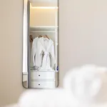 A television, along with ironing facilities and air conditioning, are provided in a balcony and a dressing area for guests' comfort and convenience. This apartment is also furnished with a work desk. A bathroom comprises a separate toilet and a shower. Furthermore, a hair dryer, complimentary toiletries, and dressing gowns is available.